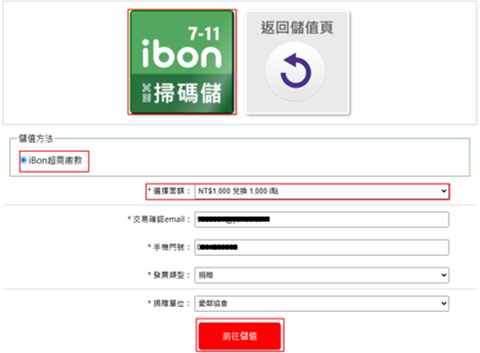 步驟1. 選擇【ibon掃碼儲】後,儲值方式請點選【ibon超商繳款】,確認儲值金額後,請按下【確認送出】,系統將生成您個人的 【三段式繳費條碼】。