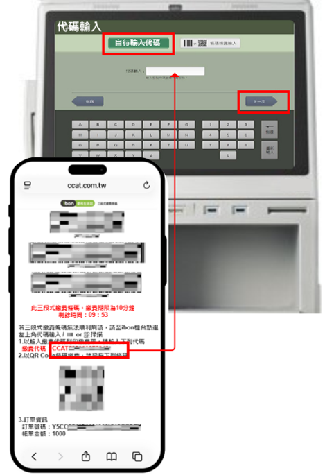 步驟4.選擇【自行輸入代碼】,輸入個人【三段式繳費條碼】中的【繳費代碼】輸入完成請按下下一步。